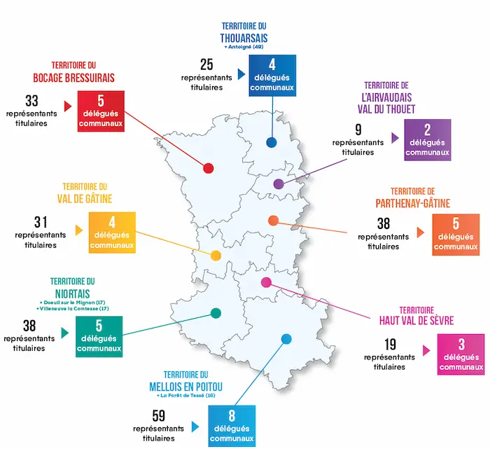 Les représentants de chaque territoire éliront sur la règle de 1 délégué pour 8 communes leurs délégués communaux.